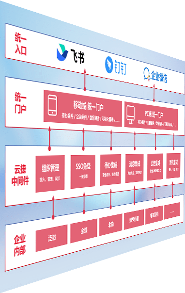 对协作平台提供支持服务,,,,支持企业应用与协作平台对接,,包含组织同步、、、、消息集成、、、、待办集成等。。支持目前主流的协作平台:钉钉、、企微和飞书。。